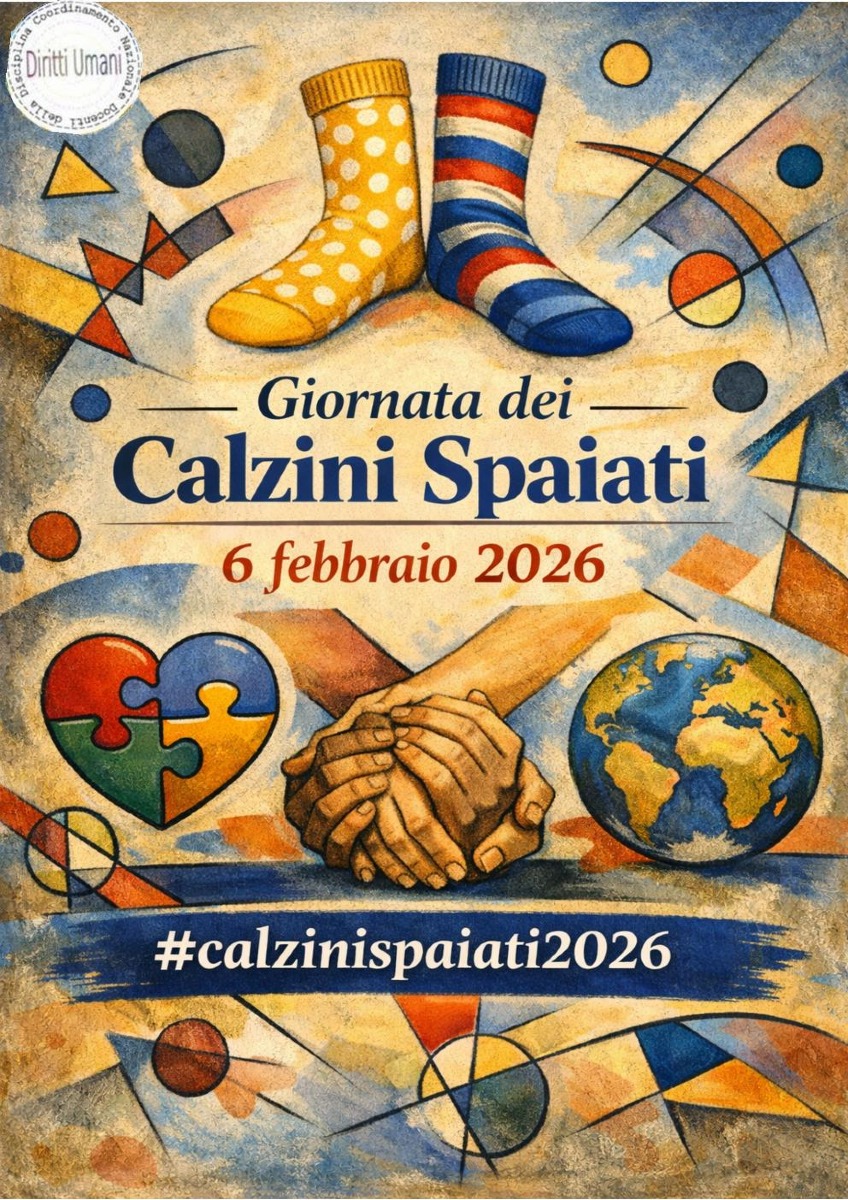 Il Coordinamento Nazionale Docenti della disciplina dei Diritti Umani richiama l’attenzione sul valore educativo, culturale e civico della Giornata dei calzini spaiati, che il 6 febbraio 2026 tornerà a coinvolgere scuole, famiglie e comunità in un gesto simbolico capace di parlare il linguaggio universale dei Diritti Umani.