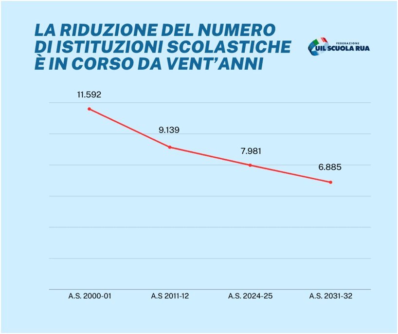 Il seguente comunicato stampa è stato inviato alla nostra redazione dall'Ufficio Stampa Uil Scuola Rua e fornisce un'analisi approfondita sui processi di dimensionamento scolastico in Italia. A partire dall'anno 2000, il Paese ha assistito a una costante riduzione delle autonomie scolastiche, un fenomeno che ha visto la perdita di circa 1.000 scuole in dieci anni e che proseguirà anche nei prossimi dieci.
