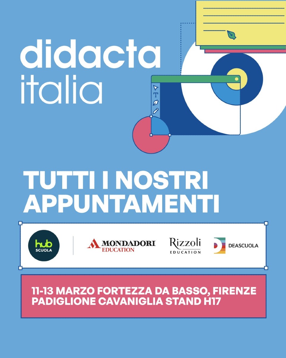 Segrate, 5 marzo 2026 - Mondadori Education, Rizzoli Education e Deascuola partecipano a Didacta Italia, l’appuntamento di riferimento per la formazione e l’innovazione nel settore educativo, in programma a Firenze dall’11 al 13 marzo 2026.