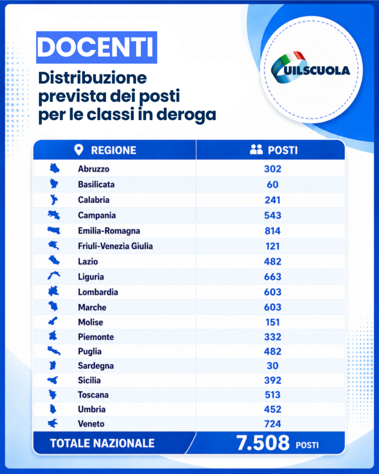 Organici scuola 2026/27: nuovi criteri per le classi in deroga con distribuzione posti [UIL Scuola Rua]